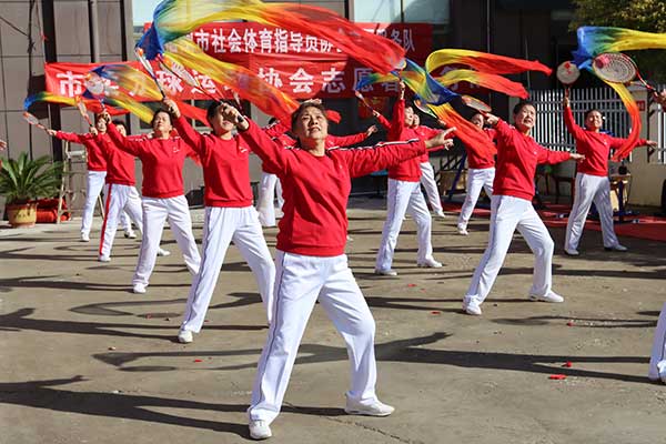 10月20日,市柔力球運(yùn)動(dòng)協(xié)會(huì)會(huì)員在展演柔力球。重陽(yáng)節(jié)即將來(lái)臨,市柔力球運(yùn)動(dòng)協(xié)會(huì)、埇橋區(qū)老年大學(xué)組織會(huì)員、學(xué)員走進(jìn)蓮花老年頤養(yǎng)中心,開(kāi)展慰問(wèn)演出?;顒?dòng)現(xiàn)場(chǎng),柔力球、舞蹈、葫蘆絲、豫劇等精彩節(jié)目輪番上演,贏得了老人的陣陣掌聲。 特約攝影 劉中玉