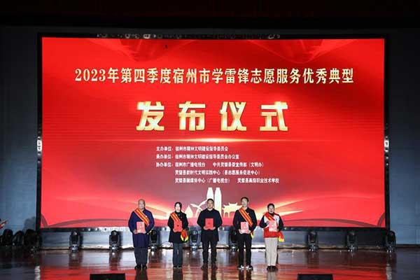 拂曉新聞網(wǎng)--拂曉報(bào)訊 致敬榜樣,德耀宿州。11月28日,宿州市道德模范與身邊好人現(xiàn)場(chǎng)交流活動(dòng)暨2023年第四季度“宿州好人”和“學(xué)雷鋒志愿服務(wù)優(yōu)秀典型”發(fā)布儀式,在靈璧縣高級(jí)職業(yè)技術(shù)學(xué)校舉辦。劉枝沅、盧旭威、鄭光輝等13人當(dāng)選四季度“宿州好人”,志愿者王瑞影、市紅十字志愿服務(wù)隊(duì)等9例典型當(dāng)選第四季度市級(jí)“學(xué)雷鋒志愿服務(wù)優(yōu)秀典型”。