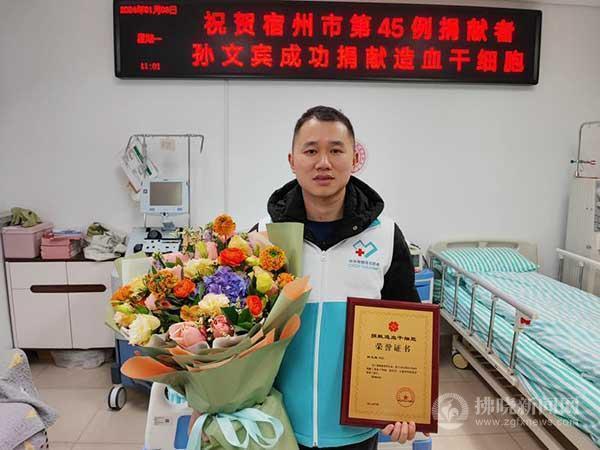 拂曉新聞網(wǎng)--拂曉報(bào)訊 1月8日,宿州籍消防員孫文賓在合肥捐獻(xiàn)出144毫升造血干細(xì)胞混懸液,成功為一名血液病患兒續(xù)航生命。他成為宿州市第45例、安徽省第587例成功捐獻(xiàn)造血干細(xì)胞的志愿者。