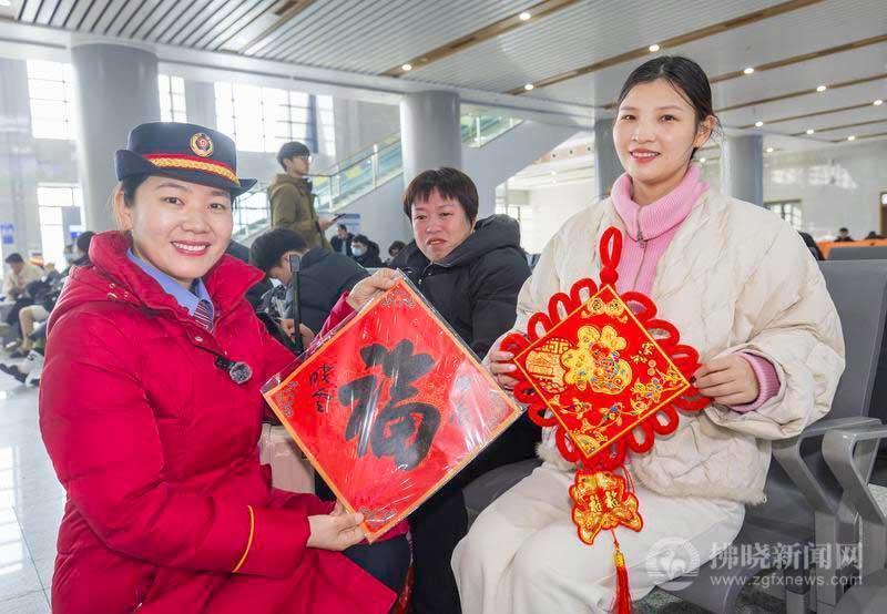 1月26日,2024年春運(yùn)拉開帷幕。當(dāng)日,宿州火車站工作人員為進(jìn)站旅客送來(lái)龍年吉祥物及新春福字,表達(dá)新年祝福。據(jù)悉,2024年春運(yùn)自1月26日至3月5日,春運(yùn)40天宿州站預(yù)計(jì)發(fā)送旅客24萬(wàn)人,客流以探親流、務(wù)工流、旅游流、學(xué)生流為主,流向主要為合肥、上海、南京、杭州等方向。記者 蘇洋 攝