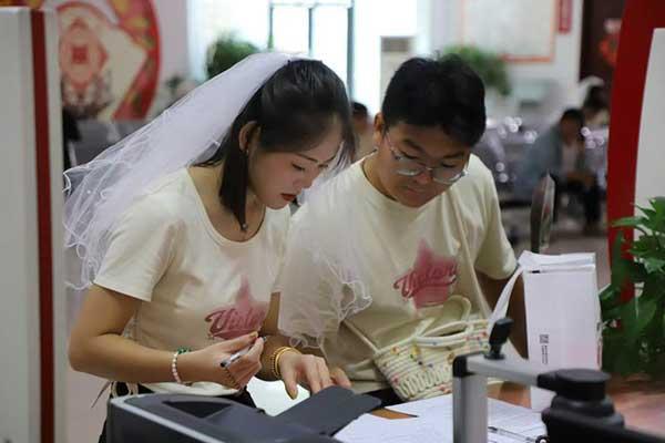 據(jù)統(tǒng)計,8月10日當天,埇橋區(qū)民政局婚姻登記處共為88對新人辦理了結(jié)婚登記。