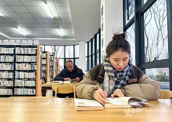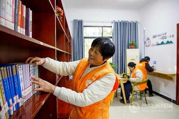 環(huán)衛(wèi)工人在呂家戶外勞動(dòng)者驛站內(nèi)查閱書籍。